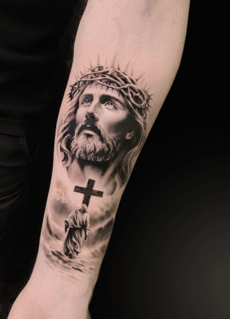 Доступные цены на тату на руке в стиле реализм черно-белые в Москве