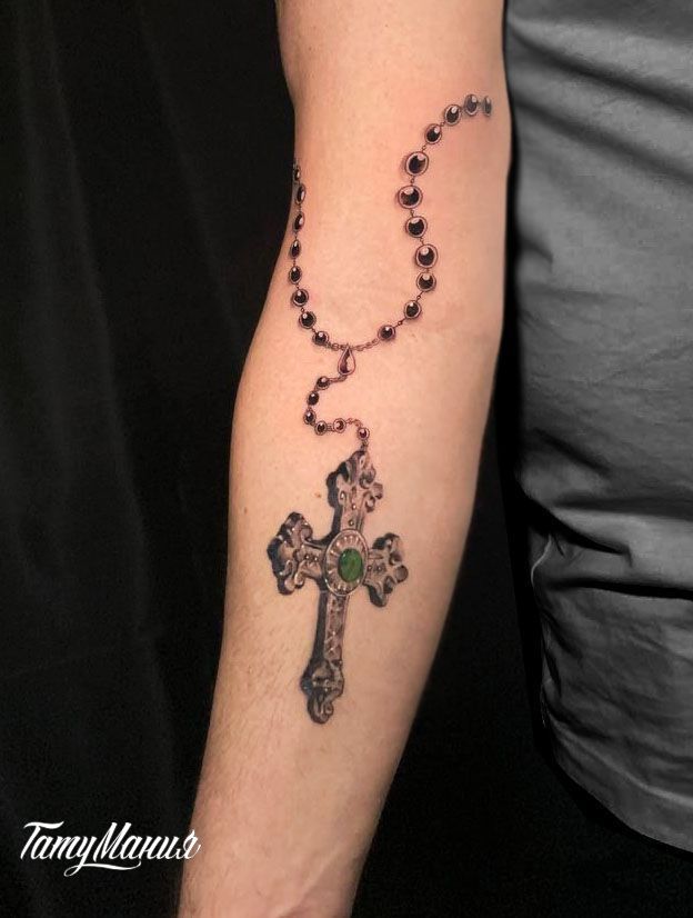Композиция рассчитана на женскую анатомию: компактный размер держит линию предплечья, легко ложится на наружную или внутреннюю поверхность, подчёркивая изящество руки без перегрузки пространства. Детали проработаны тонкой иглой и мелкими растушёвками — это делает работу читаемой даже при небольшом формате и обеспечит гармоничную интеграцию цвета с естественным тоном кожи.