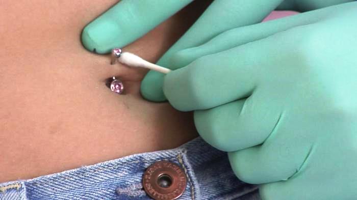 Главная проблема при уходе за пирсингом пупка – достаточно длительное заживление ранки прокола. Сам прокол и украшение в пупке постоянно соприкасаются с одеждой, из-за чего ее полное заживление часто затягивается на несколько месяцев. Но при этом строгие ограничения следует соблюдать только в первые несколько недель с момента прокола. Не следует в первые две недели посещать бани и сауны. Кроме того, нужно ежедневно по несколько раз обрабатывать ранку перекисью водорода или другим действенным дезинфицирующим средством. Ну и также следует соблюдать другие правила предосторожности, которые вам продиктует здравый смысл.