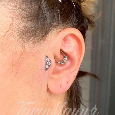Фотографии прокола трагус можно посмотреть в нашей галерее на сайте. Выбирая нашу студию, вы можете быть полностью уверены в том, что прокол будет выполнен быстро, качественно и безопасно! Мастера-профессионалы с большим опытом работы позаботятся о том, чтобы процедура прошла для вас максимально комфортно. Так же в студии вас ждет большой ассортимент украшений для пирсинга козелка уха.